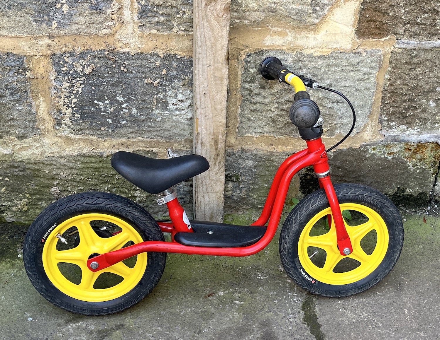 Yellow 12.5″ wheels, fast rolling pneumatic tyres