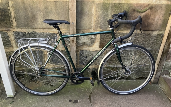 23″/58cm Reynolds 520 lightweight steel frame, metallic green